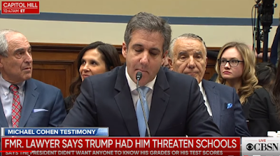 ...Trump, attending the summit with North Korea’s Kim Jong Un in Vietnam, did not comment on Cohen’s testimony except to retweet his own tweet from the evening before: “Michael Cohen was one of many lawyers who represented me (unfortunately). He had other clients also. He was just disbarred by the State Supreme Court for lying and fraud. He did bad things unrelated to Trump. He is lying in order to reduce his prison time. Using Crooked’s lawyer!”